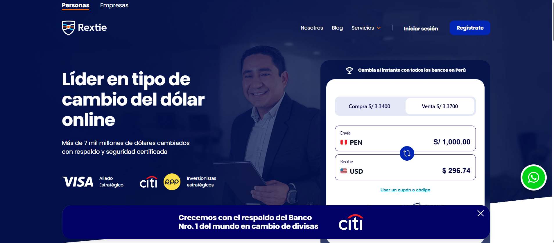 Rextie es la casa de cambio online líder del Perú, con una plataforma 100% digital que permite invertir y cambiar dólares de forma segura, rápida y sencilla. La empresa es aliada de Visa y es la primera fintech en Perú en recibir la inversión de Citi, banco líder en cambio de divisas del mundo.