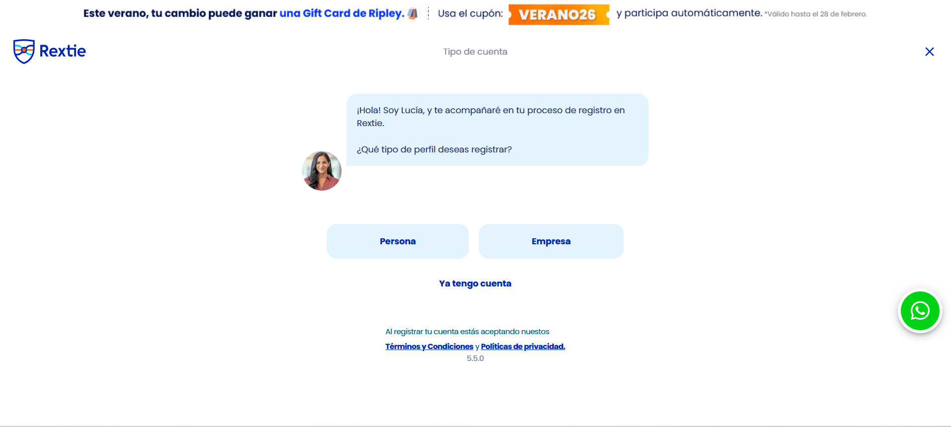 1. Puedes iniciar tus operaciones registrándote en nuestra web www.rextie.com o nuestra app y selecciona el botón Regístrate.